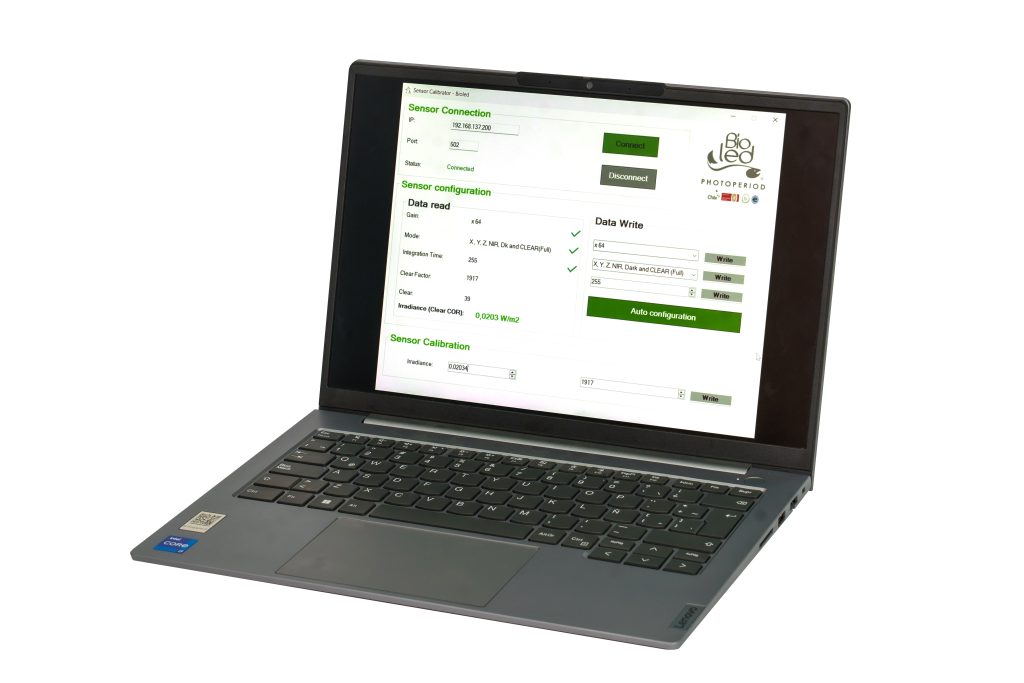Nuestro departamento de TI ha desarrollado un software con un sensor de luz multiespectral sumergible permanente. Esta innovación nos permite compensar automáticamente la luz en tiempo real de acuerdo a las condiciones ambientales del lugar de cultivo, optimizando la eficiencia.